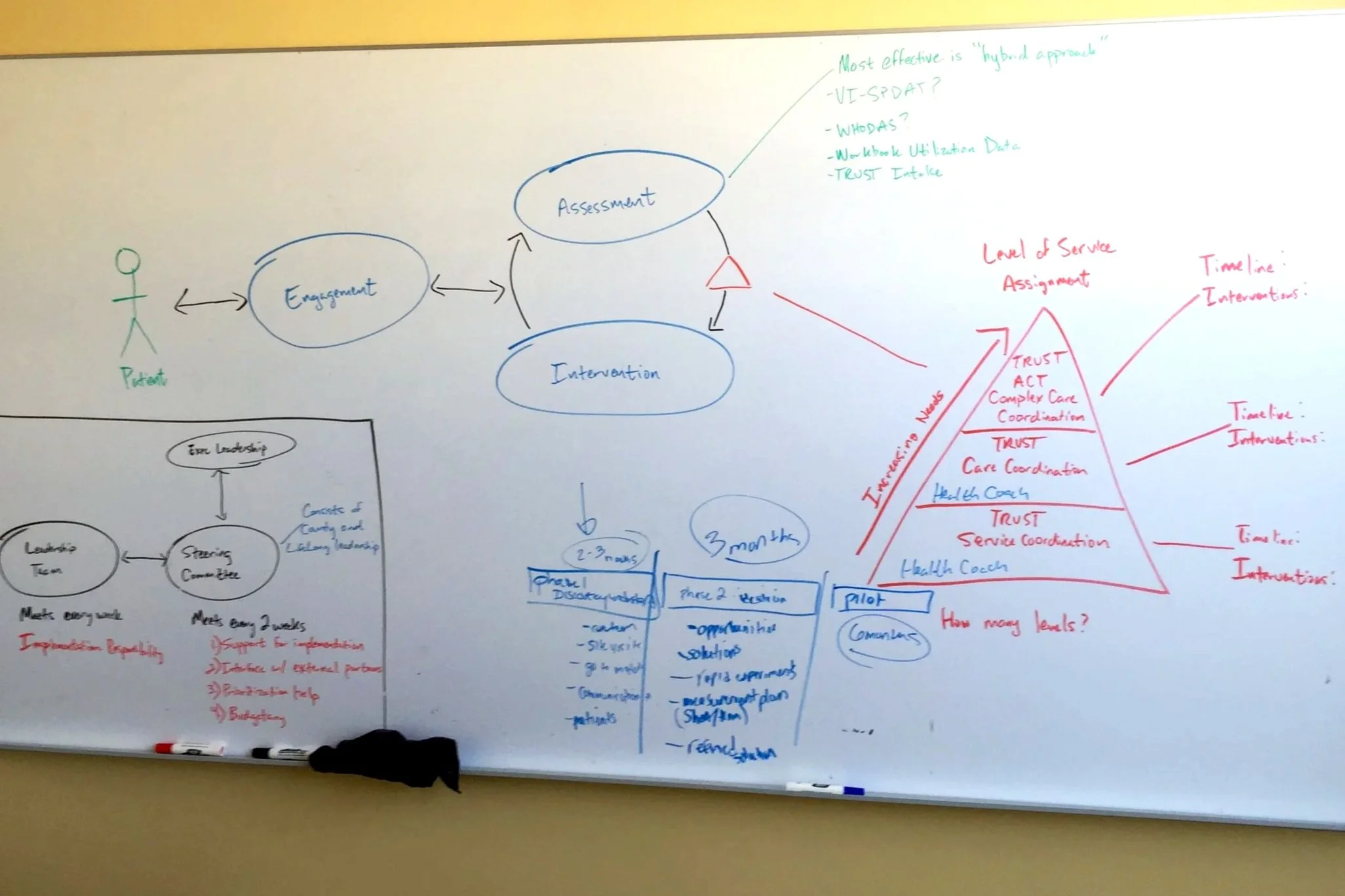 The county just opened a health center to cater to the medical and social needs of people who’ve been unhoused. For five years as a program innovation partner and then volunteer, I supported the clinical and operations teams to co-create a clinic experience where patients were “accepted, welcomed, and valued by people who know them.” Learn more about TRUST Clinic.