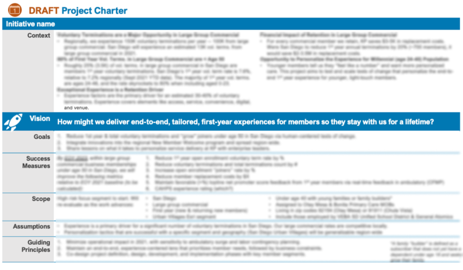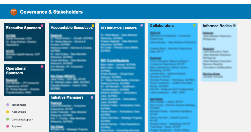 To start, I reached out to people leading existing new member efforts to learn about their progress, priorities, and any wish items that felt beyond their own influence. I hosted several kickoff and alignment sessions with a cross-functional group of 40+ people from different business lines. I created a suite of living strategy and governance documents, hosted 1:1 interviews, and fielded co-design survey to enable those who were unavailable or less likely to speak up in meetings.