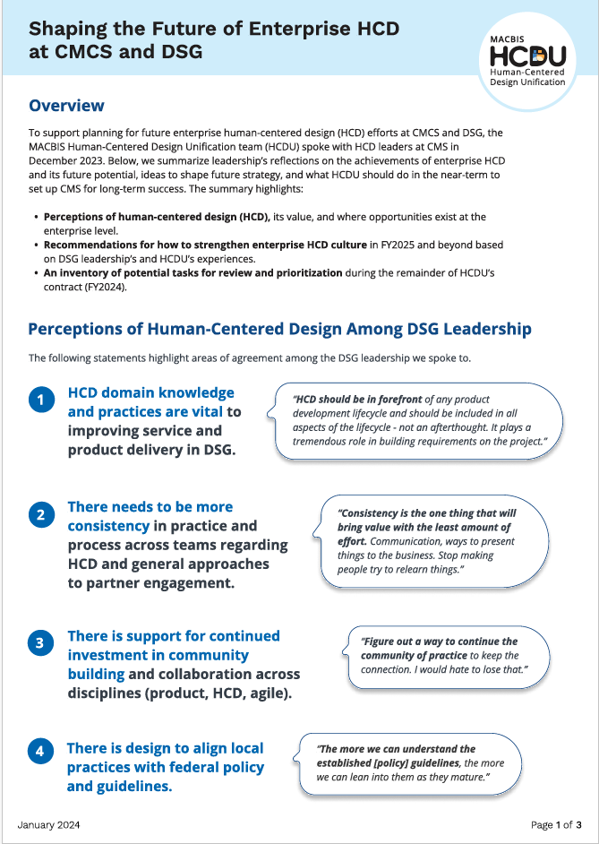 Reduced duplicative effort with our Human-Centered Design (HCD) Guidebook, which was a model for other agencies