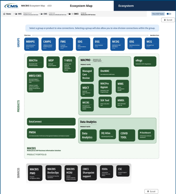 Cultivated shared purpose across team silos through a dynamic, 100+ person HCD community of practice and an interactive Ecosystem Map